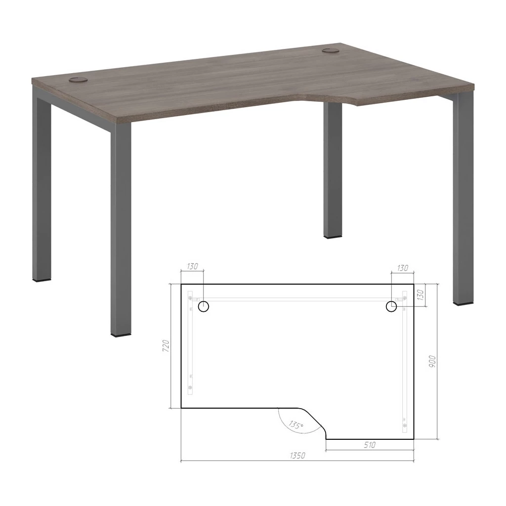 Стол эргономичный правый на металлоопорах 135 New Line Дуб Шамони темный